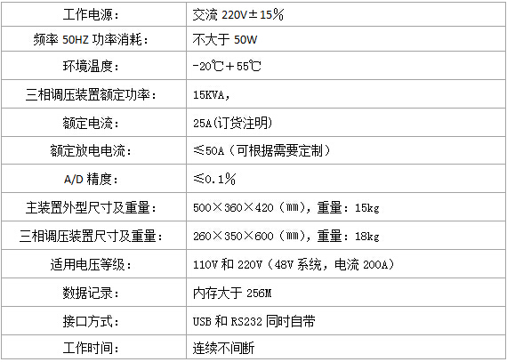 - 實現(xiàn)對不同容量充電機及蓄電池組容量的檢測和試驗,并能準確可靠測出變電站直流電源的穩(wěn)壓精度、穩(wěn)流精度、紋波系數(shù)等參數(shù)。