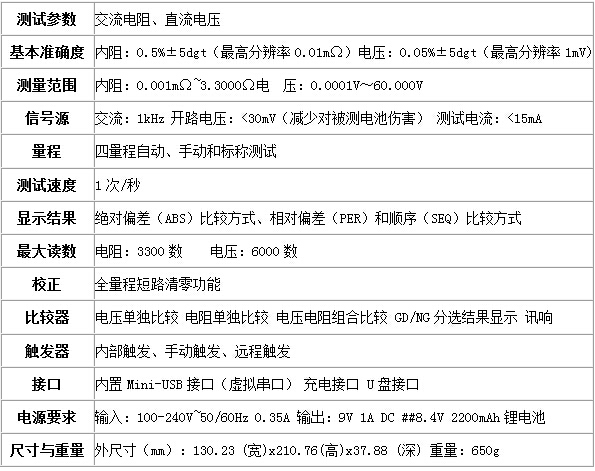 - 在線或離線測量電池內阻,接觸電阻和電池電壓等參數(shù)。