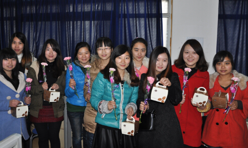 8日上午9點(diǎn)30分,行政部小伙們踏著春風(fēng),歡樂(lè)地出門(mén)了。他們此時(shí)肩負(fù)一項(xiàng)神圣的使命——為公司女同事們送上節(jié)日的祝福。微笑敲門(mén),祝福先行,洪亮的“節(jié)日快樂(lè)”,他們?yōu)楣救w女女同胞們送上了一朵朵康乃馨,還有為每個(gè)人精心挑選的小禮物。銷(xiāo)售部張?zhí)m的靠枕舊了,細(xì)心的小伙們給她送上了新的,采購(gòu)部呂海燕早就嚷著要買(mǎi)一盆盆栽,行政部張圣早早為她準(zhǔn)備了紅豆杉,還有個(gè)性的記事本,筆筒,每個(gè)人都收到了節(jié)日的祝福,禮物雖小,卻凝聚著滿(mǎn)滿(mǎn)的愛(ài)心與祝福。公司女同胞們調(diào)侃他們是“中智誠(chéng)好女婿”。